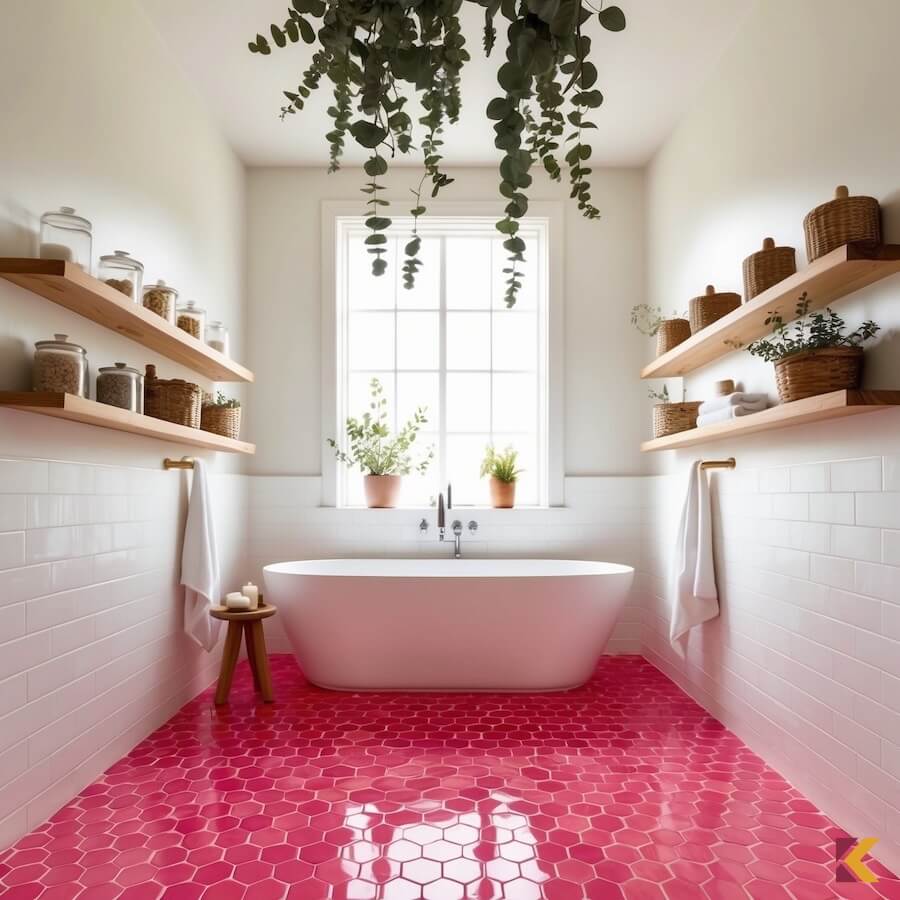 W kuchni lepiej unikać dużych płaszczyzn w biskupim – ten intensywny kolor może podbijać apetyt! Za to szafki pod blatem w tym odcieniu dodadzą energii bez przytłoczenia. W łazience sprawdzi się jako kolor ręczników lub mozaiki w prysznicu – szczególnie z białymi fugami.