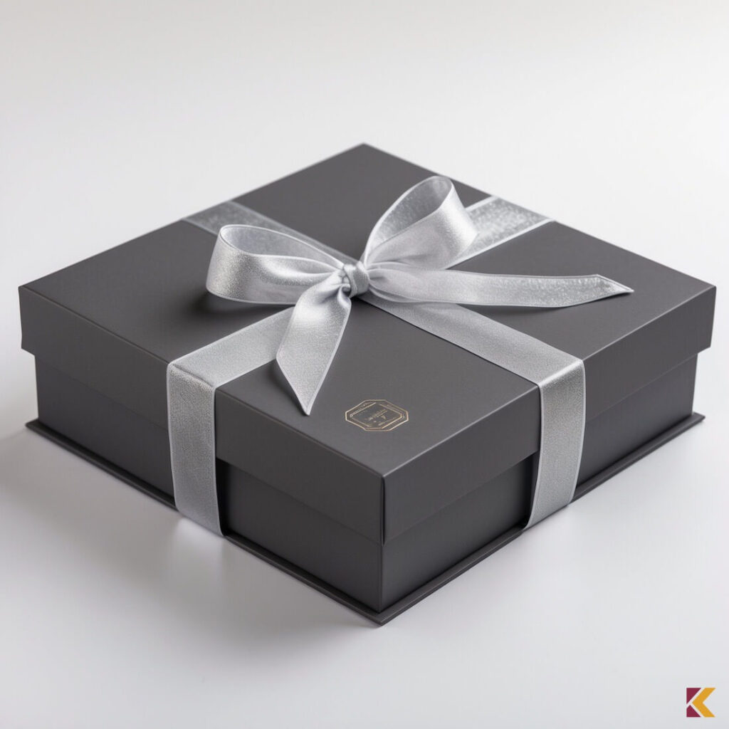 Grafitowe opakowanie prezentowe z tłoczonym logo