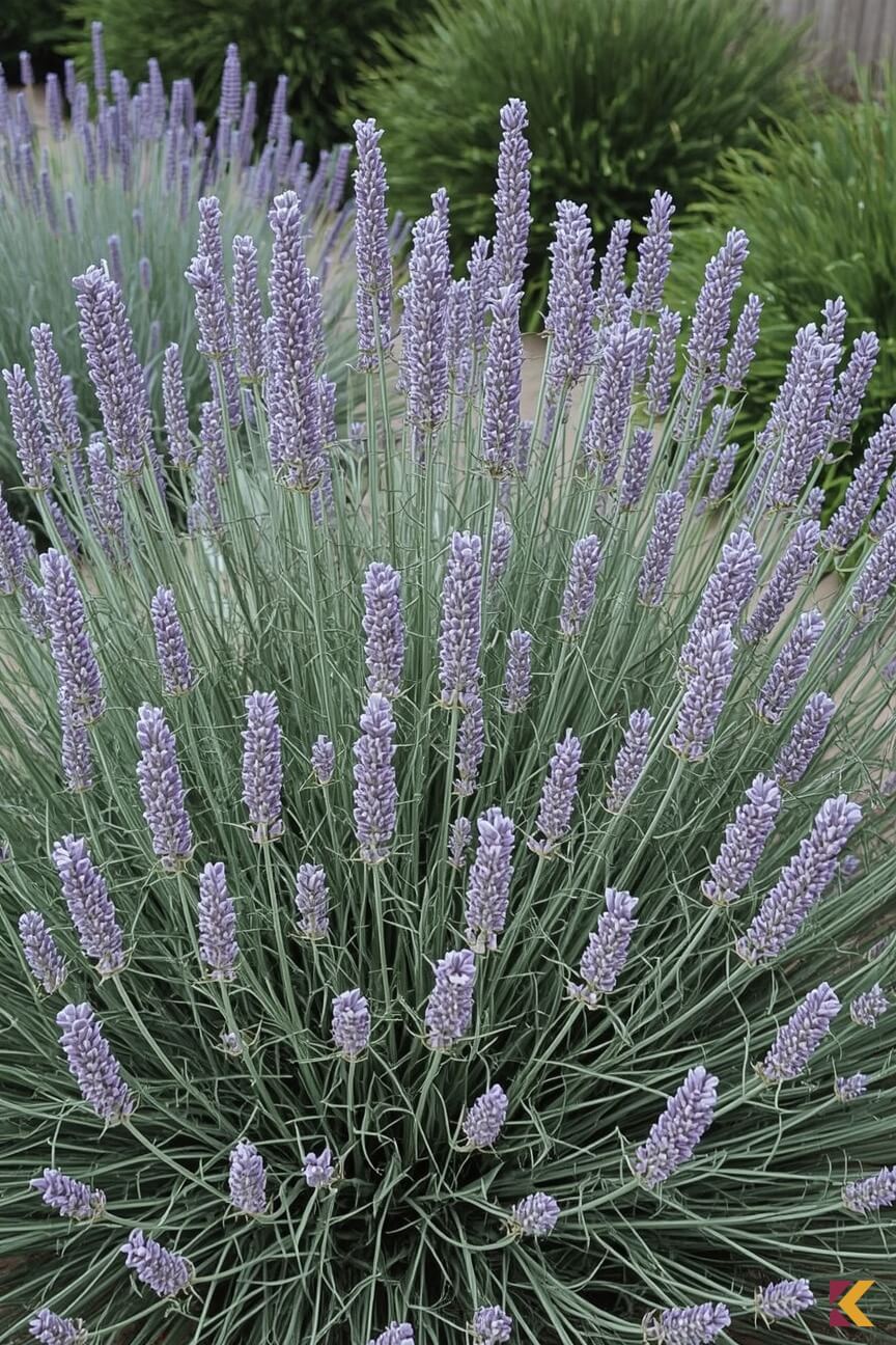 Lawenda pośrednia (Lavandula × intermedia, tzw. lawandyna) rośnie wyżej, ma dłuższe kłosy i intensywny aromat. Występuje głównie w odcieniach fioletu i lawendy, efektownie wygląda w większych plamach kolorystycznych oraz na kwiat cięty i susz. Dobrze rośnie w słońcu na glebach przepuszczalnych i zasadowych, dlatego nadaje się na rozległe, słoneczne rabaty.