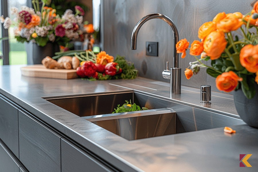 • Szkło, metal, beton czy żywica to przykłady nowoczesnych materiałów, które mogą wprowadzić do szarej kuchni element industrialny lub high-tech.